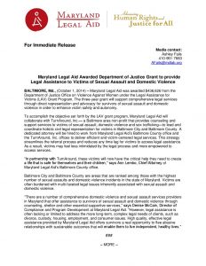 Maryland Legal Aid is a 501(c)(3) non-profit organization. Tax identification number: 52-0591621. Contributions to Maryland Legal Aid are tax-deductible.